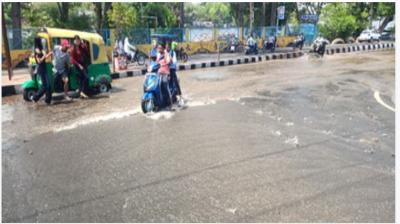 भोपाल में लोक भवन के सामने सड़क धंसने से हड़कंप,...