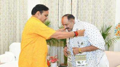 मुख्यमंत्री से मिलते हुए प्रसिद्ध कथावचक मिश्रा