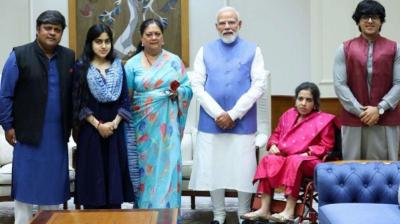 वसुंधरा राजे अपने परिवार के साथ पहुंचीं प्रधानमंत्री नरेंद्र मोदी से मिलने