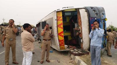 लुधियाना-आजमगढ़ रूट पर हादसा, तेज रफ्तार बस ने खोया संतुलन
