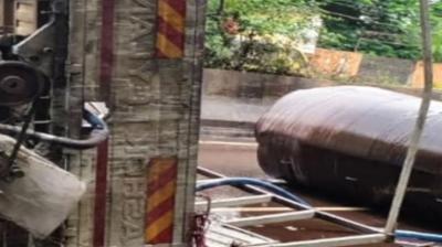 ट्रक का टायर फटा, पलटा टैंकर… हाईवे पर अफरा-तफरी