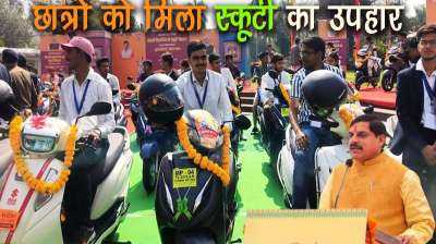 भोपाल: आज सीएम डॉ. मोहन यादव ने मध्य प्रदेश के 7900 मेधावी विद्यार्थियों को स्कूटर की सौगात दी। भोपाल के कुशाभाऊ ठाकुर कन्वेंशन सेंटर में सीएम द्वारा विद्यार्थियों को पेट्रोल...