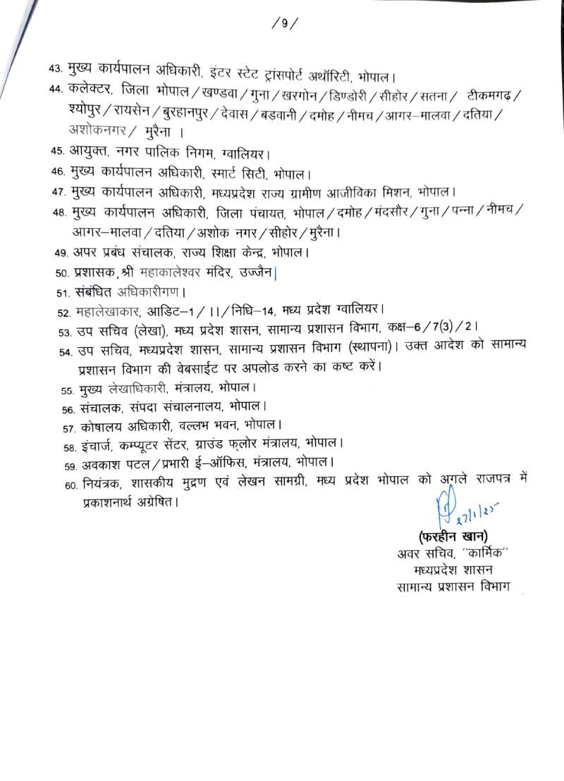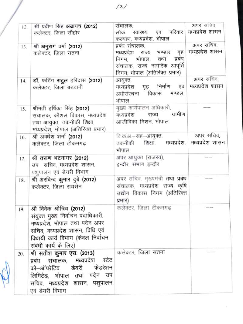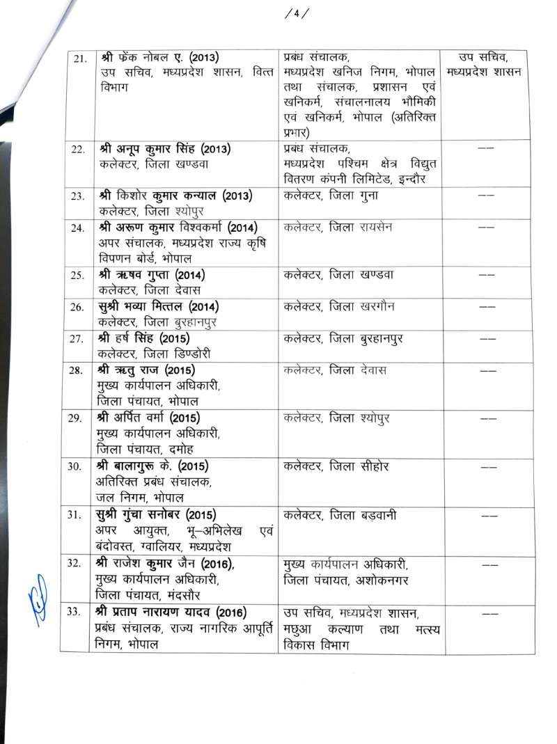 मध्य प्रदेश में 42 आईएएस अफसरों के तबादले, 12 जिला मजिस्ट्रेट बदले गए