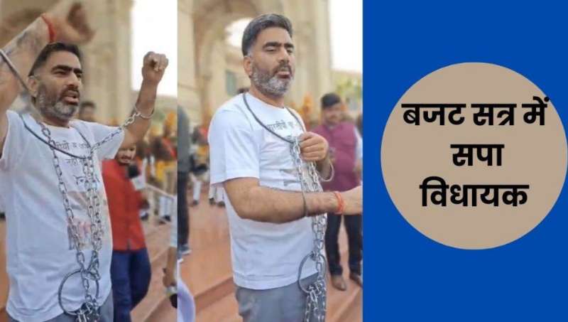 लखनऊ। बजट सत्र के पहले दिन सपा ने अनोखे रूप में प्रदर्शन किया। इस दौरान सपा विधायक हाथ पैरों में जंजीर पहनकर प्रदर्शन किया। अतुल प्रधान ने बजट सत्र में शामिल होने से पहले कहा, योगी सरकार बताती है कि विश्व में लगातार देश का डंका बज रहा है। हमारे भारतीय लोग, जिन्हें 40 घंटा जंजीरों में जकड़कर रखा गया। अमेरिका से उन्हें बेरहमी से डिपोर्ट किया गया।