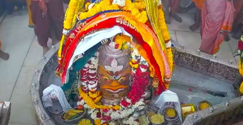श्री महाकालेश्वर मंदिर प्रांगण में आज कालो के काल बाबा महाकाल भस्म आरती के दौरान मस्तक पर और बेल पत्र लगाकर शृंगारित हुए। श्री महाकालेश्वर मंदिर में आज सुबह 4 बजे हुई भस्मारती के दौरान बाबा महाकाल का पंचामृत पूजन अभिषेक कर आकर्षक स्वरूप मे शृंगार किया गया। इस दौरान बाबा महाकाल को रुद्राक्ष की माला अर्पित की गई। इस शृंगार के बाद फिर उन्होंने भस्म रमाई। जिसके बाद भक्तों ने इन दिव्य दर्शनों का लाभ लिया और जय श्री महाकाल का उद्घोष भी किया।