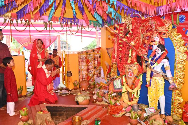 रायपुर: मुख्यमंत्री विष्णु देव साय ने आज जशपुर जिले के बगिया गांव स्थित दुर्गा मंदिर में देवी दुर्गा की पूजा-अर्चना की। इस पावन अवसर पर उन्होंने अपनी धर्मपत्नी श्रीमती कौशल्या साय और परिवार के सदस्यों के साथ देवी की विधिवत पूजा-अर्चना की और प्रदेशवासियों की सुख, समृद्धि और खुशहाली की कामना की। मुख्यमंत्री विष्णु देव साय और श्रीमती कौशल्या साय ने इस अवसर पर पारंपरिक श्रद्धा और स्नेह के साथ छोटी-छोटी कन्याओं को आदरपूर्वक भोजन कराया और उनका आशीर्वाद प्राप्त किया।