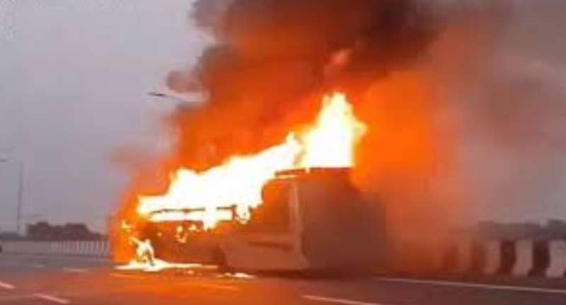 लखनऊ में डबल डेकर बस में भीषण आग, 5 लोगों की जिंदा जलकर मौत