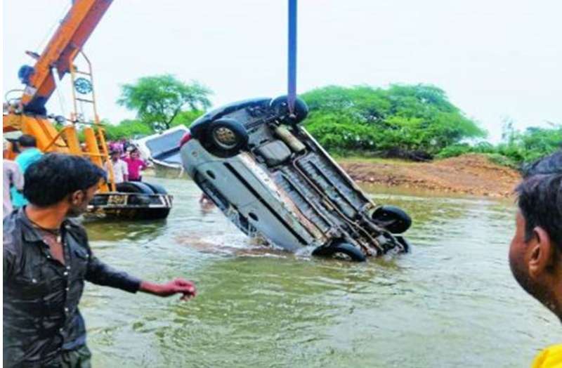 अमरकंटक गए परिवार की कार बही, महिला की मौत, बच्चों और पति की तलाश जारी