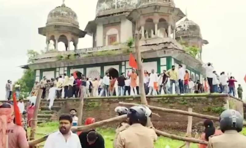 उग्र हिंदू संगठन के लोग बैरीकेडिंग तोड़ किए पूजा की कोशिश