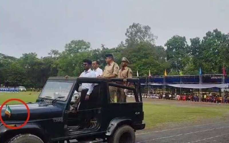 एसपी और कलेक्टर के सामने हुई गलती, गाड़ी में उल्टा लहराता रहा तिरंगा