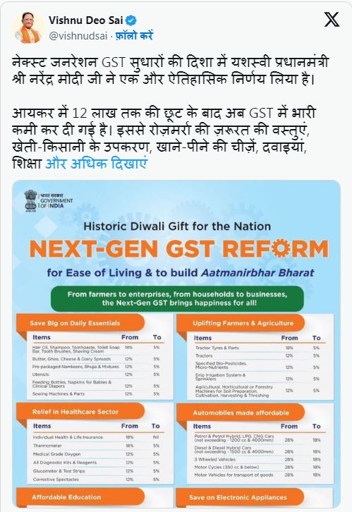 GST सुधारों पर CM साय बोले- यह आम जनता के लिए ऐतिहासिक कदम