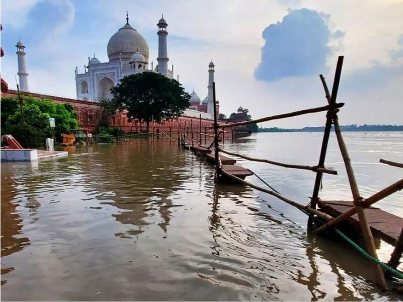 ‘ताजमहल’ बना ‘जलमहल’: यमुना का पानी ऐतिहासिक धरोहर तक पहुंचा, पर्यटक परेशान