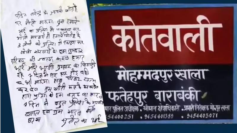 बाराबंकी: 'मैं तुमको चौराहे पर गोली मरूंगा, तुमने मेरे गिरोह के तीन सदस्यों को पुलिस से पकड़वा कर गोली मरवाई है। हम तुमका घर में गोली मारब। उत्तर प्रदेश के बाराबंकी में एक धमकी भरे पत्र ने सनसनी फैला दी। ये पत्र बीजेपी के पूर्व मंडल उपाध्यक्ष के घर के बाहर चस्पा किए गए हैं। जिसमें धमकी देते हुए लिख गया कि मेरे गिरोह के तीन सदस्यों को पुलिस से पकड़वा कर गोली मरवाई है इसलिए मैं आप को बीच चौराहे पर गोली मरूंगा। मामले की शिकायत पर पुलिस जांच में जुट गई है।