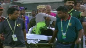 स्ट्रेचर के द्वारा मैदान से ले जाया गया बाहर