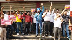 दुर्ग में बैंक कर्मचारियों की हड़ताल