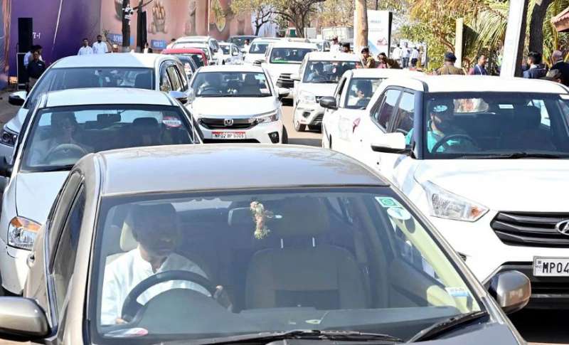 भोपाल। राजधानी भोपाल के इंदिरा गांधी राष्ट्रीय मानव संग्रहालय में आयोजित दो दिवसीय ग्लोबल इन्वेस्टर्स समिट के पहले सुबह 8 बजे से लेकर करीब डेढ़ घंटे तक डिपो चौराहा पर भारी जाम लग गया। जाम में कार्यक्रम में शामिल होने जा रहे मेहमानों के वाहन भी फंसे रहे। बताया गया है कि एकाएक न्यू मार्केट, जवाहर चौक, स्मार्ट सिटी और पी एंड टी की ओर से आने वाले ट्रैफिक के कारण पहले डिपो चौराहा पर और इसके बाद आगे तक जाम के हालात बन गये। अफसरो का कहना है की 9 बजे तक इन्वेस्टर्स समिट में शामिल होने वाले मेहमानों को कार्यक्रम स्थल के अंदर किये जाने का प्लान बनाया गया था। जिससे पीएम के आगमन से एक घंटे पहले सड़क को क्लियर किया जा सके। लेकिन सुबह 8 से 9 बजे के बीच बड़ी संख्या में मेहमानों ने स्मार्ट सिटी रोड से आना शुरू कर दिया, जबकि इस रोड को समिट में जाने वाले गेस्ट को इस्तेमाल की इजाजत नहीं थी। लोगों ने स्वेच्छा से इस रास्ते को अपना लिया। चारो और से ट्रैफिक का दबाव अधिक होने से डिपो चौराहा पर जाम की स्थिति बन गई थी। यह जाम करीब एक किलोमीटर लंबा हो गया। बाद में कड़ी मशक्कत के बाद ट्रैफिक जवानो ने जाम को क्लियर कराया। हालांकि, कार्यक्रम को लेकर पुलिस एक महीने पहले से तैयारियां कर रही थी, और कई बार रिहर्सल भी की जा चुकी थी। यातायात व्यवस्था बनाये रखने के लिये 1 हजार से अधिक जवानों को मैदान में उतारा गया था